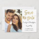 Hand Lettered Faux Gold Foil Script Wedding Save the Date Photo Card.The Save the Date photo card can be altered to include your name and photo. This photo card has a picture on the front and back that can be replaced.