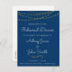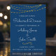 Faux Gold Foil String Lights and Handwritten Script Navy Blue Elegant Wedding Rehearsal Dinner Invitation.