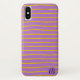 Features a stripe pattern in gold simulated foil, on a purple background. Personalize with initials.
