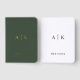 Gold foil wedding vow book set featuring his and her vow books with custom monogram initials. This personalized vow book set showcases elegant gold foil typography on a rich forest green and white cover — perfect for garden weddings, woodland ceremonies, and boho celebrations. A luxurious gold foil vow book keepsake for modern couples. Personalize your vow book with initials, names, and wedding date for a stunning green and gold wedding gift.