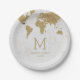 Gold Foil World Map Destination Wedding Monogram Paper Plates