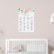 This gold foliage floral alphabetical seating chart is perfect for a modern wedding. The design features hand-drawn gold and green botanical foliage with pink, blush and white flowers, inspiring natural beauty.