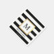 Gorgeous modern yet elegant personalized MONOGRAM wedding disposable paper napkins for your reception. Not cheap looking but expensive and classy. Faux double gold foil frame, background with black and white stripes. Font and size can be edited. Background color can be changed. Cocktail napkins also available. Found in 'Wedding NAPKINS & PLATES' wedding collection. Contact Designer for special designs.