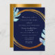 Gold Frame Blue Navy Monogram Tropical Bridal Wedd Invitation