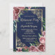 Gold Frame Burgundy Roses Navy Blue Retirement Invitation