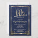 Gold Frame Confetti Navy Blue 50th Birthday Party Invitation