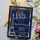 Gold Frame,Eiffel Tower Blue 50th Birthday Party Invitation