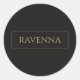 Gold Frame Personalized Name Deep Black Luxury Classic Round Sticker