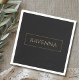 These personalized napkins feature a deep black background with a custom name displayed in a classic gold serif font. A thin gold frame around the name creates a refined luxury style that looks elegant on any celebration table. The black and gold color palette is timeless and perfect for birthdays, weddings, anniversaries or formal events. The gold effect is printed color only and does not contain real metallic shine. Personalize the design with any name to create stylish and memorable party details.