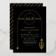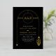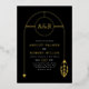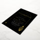 A refined wedding invitation made from luxurious gold foil, showcasing the couple’s initials against a dark backdrop. This contemporary invite displays your initials within an alluring frame that mimics fine wire jewelry, accented by a foliage detail on one side and an arrow on the other. The reverse side features a diagonal arrangement of the couple’s names in gold on black, imparting an elegant touch of refinement. The cover has been designed using assets from Freepik.com