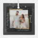 Modern brushed-gold framed wedding photo amid snowflakes, with Our First Christmas Married in a festive white calligraphy script, makes the perfect memento keepsake gift for the just married newlyweds, this Christmas holiday season. Easily customize your name and year of choice.