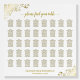 This elegant wedding seating chart features an elegant yet simple design with a gold script calligraphy title on a white background and ornate golden faux foil floral curls and swirls in the corners. The traditional layout has seating assignments for 400 guests at 40 tables with 10 seats per table. There is room for the names of the couple below. Simple, stylish, and classy this seating chart will add beauty and grace to your reception while helping your guests to find their tables.