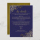 Gold Frills Elegant Navy Blue Wedding Details Enclosure Card