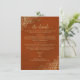 This beautiful enclosure card is designed to provide your guests with additional information on the reception, accommodations, travel arrangements, registry, website, directions, or any other specifics that your guests might require. Features a simply yet elegant marbled rust orange or burnt umber colored design with a lacy script title, and frilly gold faux foil curls and swirls in the corners.