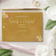 Elevate your stationery suite with this luxurious gold-front, navy-back envelope. The front features a rich gold backdrop elegantly printed with etched botanical motifs and personalized names, while the reverse delivers a deep navy tone when sealed. The interior and flap lined in gold create a luxe peek-a-boo effect, perfect for envelopes that make an impression. This two-tone design is ideal for formal or evening weddings and pairs beautifully with gold-foil invitations or velvet programs. Fully customizable in print — simply replace placeholder text with your guests’ details.