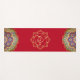 Indian inspired yoga mat done in red, with a gold tone decorative Ganesha, in the middle. Graphics of colorful mandalas decorate both ends of the mat. Same design is featured on both the front and backside of the mat.