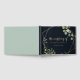 This gold geometric blue green calligraphy wedding guest book is perfect for a simple wedding. The design features hand-painted beautiful green leaves in a dark blue background, adorning a gold geometric frame.