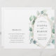 This wedding ceremony program features painted watercolor eucalyptus and botanical green leaves with a gold geometric frame. NOTE: You will need to fold them in half when they arrive.