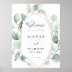 This wedding welcome sign features painted watercolor eucalyptus and botanical green leaves with a gold geometric frame. For more advanced customization of this design, please click Customize Further link to change font, size, and color.