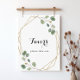 This gold geometric modern calligraphy favors sign is perfect for a rustic wedding or bridal shower. The design features hand-drawn botanical green eucalyptus branches and leaves adorning an elegant frame.