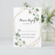 These gold geometric modern calligraphy RSVP cards are perfect for a rustic wedding. The design features hand-drawn botanical green eucalyptus branches and leaves adorning an elegant frame.