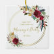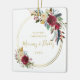 Elegant photo ornament featuring "Our First Christmas as Mommy and Daddy" along with the year surrounded by a gold geometric hoop wreath with a boho style red floral arrangement. The backside has your favorite picture. Keep this ornament to celebrate the birth of your first baby or give as a gift to a couple for their first Christmas as new parents.