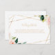 This gold geometric wedding details enclosure card is perfect for a rustic wedding. The design features lovely white, pink, and blush hand-painted roses and a touch of greenery, adorning gold geometric frames, inspiring artistic beauty.