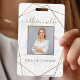 Gold Geometric White Marble Modern Photo ID Badge. This simple feminine design is perfect for any professional business woman looking for a fun artistic corporate identity. Perfect for an event planner, makeup artist, hair stylist, salon owner and more!