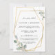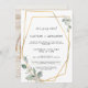 Modern design features a gold geometric frame encased in eucalyptus greenery. Great way to invite guests virtually to your online wedding. Easily customize with names and personal details on front of card, and your favorite photo on back of card (an optional choice).