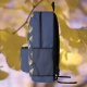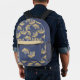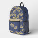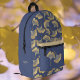 Gold Gingko Leaves on Slate Blue Monogram Printed Backpack