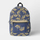 A pretty partern of tannish gold gingko bilobo leaves grace a slate blue gray background of this printed backpack. The sides are plain slate blue gray with an optional gold monogram - type your initials over the placeholder initials in the Personalize box or delete the placeholder if you don't want any text. The front pocket is a colorblock of the slate blue gray with gold trim, and it features two beautiful gingko leaves. If you like zen nature symbols, botanical studies, or healing, or just appreciate the pretty and unique pattern, this might be the right design for you.