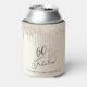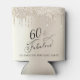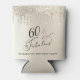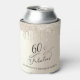 Elegant and chic personalized 60th birthday party can coolers featuring "60 & Fabulous" in a stylish script on a gold background with gold faux glitter dripping from the top. Personalize with her name.