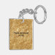 A keychain featuring a gold glitter background and space for your message.