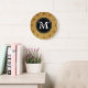Gold glitter and black monogram wall clock. Sparkly monogrammed design. Stylish home decor. Glittery decorations.