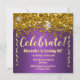 Gold Glitter and Metallic Purple 40th Birthday Invitation