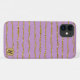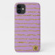 Features a wavy, striped gold glitter pattern on a purple background. Personalize with an initial on a gold foil circle.