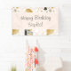 Add a special touch to the birthday celebration of your little girl or boy with this adorable birthday party banner sign. Banner sign has gold glitter party balloons and party hats on top of a pink and white polka dot background. Add the text Happy Birthday and the name of your little kid for a personalized touch. Text may be modified per your preferences.