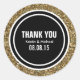 Gold Glitter Customizable Thank You Label Round Stickers With Black and White Circle Designs. Many other Colors Available. Can Be Used for a variety of events from Weddings To Birthdays and other events of your choosing.