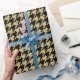 Gold Glitter & Black Houndstooth Glam Christmas Wrapping Paper