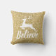 Gold Glitter & Black Houndstooth Reindeer Believe Throw Pillow