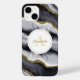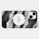 This elegant black and grey with gold faux glitter design looks stunning on this iPhone 14 case, ready for you to personalize with your name and initial. This stylish phone case would also make a great gift for a friend or loved one.