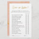 This girly golden glitter bridal shower or wedding game 'Over or Under' will be loved by your guests. The romantic design features golden lettering and a rose gold marble background on the back of the flyer. Our double sided game cards are a beautiful and practical addition to any bridal shower. These professionally designed cards are quickly customizable. You can personalize the back of the card with the names, dates, or any other text. Add your custom wording to this design by using the "Personalize" button on the right-hand side of the item, or click the "Edit" button to arrange the text, change the fonts and colors.
