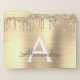 Gold and White Faux Foil Metallic Sparkle Dripping Glitter Brushed Metal Monogram Name and Initial Spiral Office or Professional Organization Folders. This makes the perfect sweet 16 birthday, wedding, bridal shower, anniversary, baby shower or bachelorette party gift for someone that loves glam luxury and chic styles.