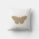 Gold glitter butterfly silhouette on a simple white background. In constrast, the back of the pillow is adorned in black and white stripes.