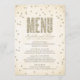 This modern & stylish bridal shower invitation design by The Spotted Olive™ features an image of gold glitter look confetti dots on a soft weathered background with the word "MENU" filled with an image of gold glitter. PLEASE NOTE: THIS DESIGN FEATURES AN IMAGE OF GLITTER CONFETTI. THERE IS NO GLITTER, CONFETTI OR EMBELLISHMENTS. THIS IS A FLAT PRINTED DESIGN. COPYRIGHT ©2014 The Spotted Olive™. All Rights Reserved.