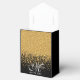 A simple and elegant favor box in midnight black with a spash of gold glitter confetti with contrasting white ribbon and lettering. You can personalize it by clicking on the customize menu. This is part of a luxurious wedding suite that can be fully personalized.