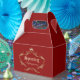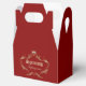 Elegant dark-red background with gold and white glitter texture crown and swirls frame, customizable text favor box design.
