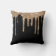 *~* Gold Glitter Drip Drips Black Throw Pillow