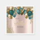 A modern, chic and glamorous glitter drips, and green balloons on a rose gold background.