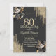 Gold Glitter Drips Black Roses Dark 80th Birthday Invitation